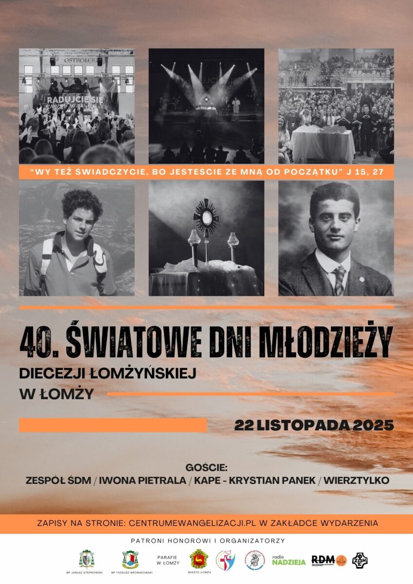 Centrum Ewangelizacji Diecezji Łomżyńskiej Dobrego Pasterza zaprasza 22 listopada 2025 roku MŁODZIEŻ z całej naszej diecezji na 49. Światowe Dni Młodzieży Diecezji Łomżyńskiej, które w tym roku będziemy przeżywać w Łomży.